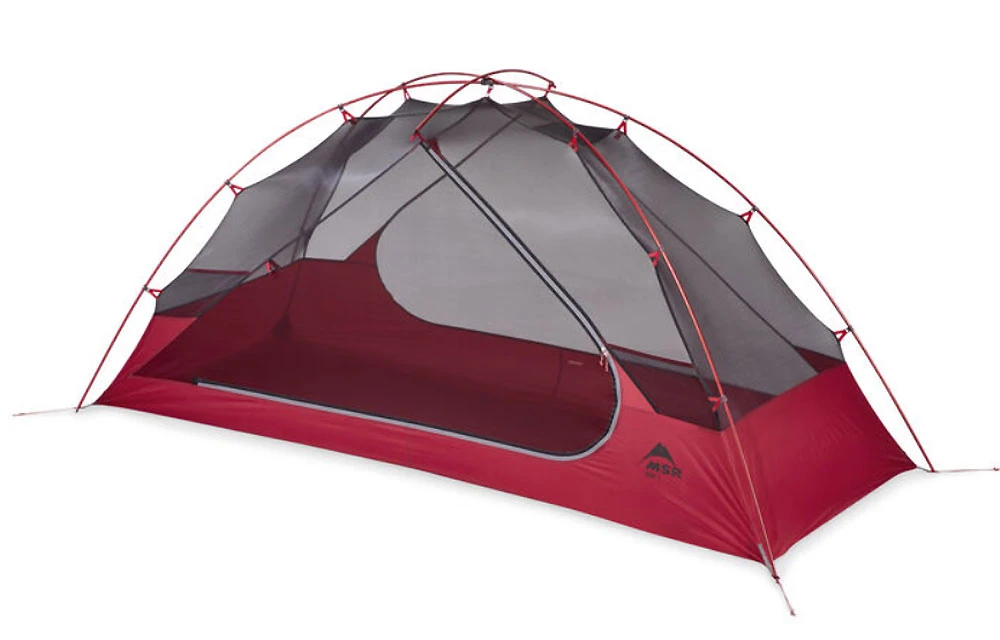 Das bei MSR bewährte Hub-System mit verbundenne Stangen stellt schnellen Aufbau sicher. Innertent-First-Prinzip ermöglicht Aufbau des Innenzeltes alleine. Für ein Solo-Zelt ziemlich geräumig, es passt auch eine breitere Isomatte, das Zeltvolumen ist durch die steilen Wände gut und wohnlich auch wenn man sich bei schlechtwetter mal eine Zeitlang im Zelt aufhalten muss.