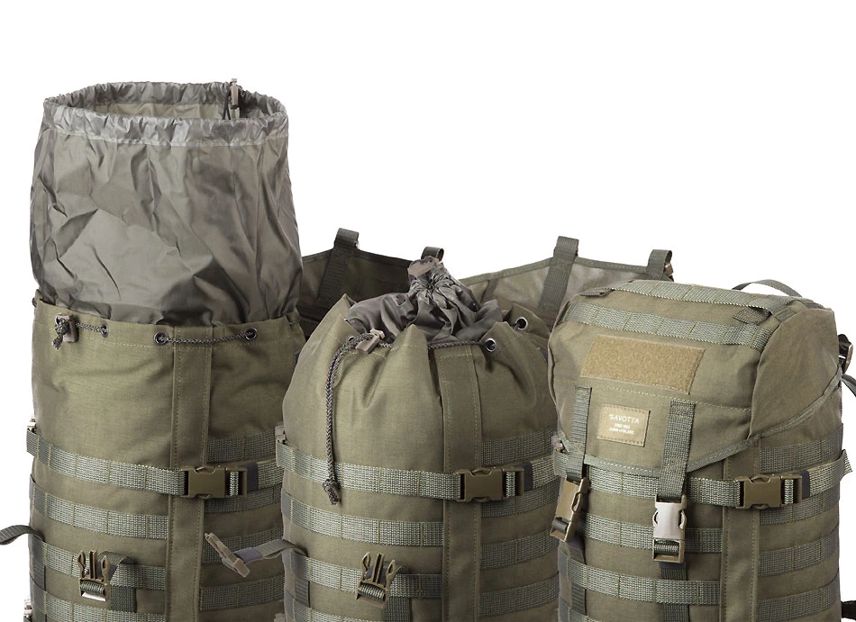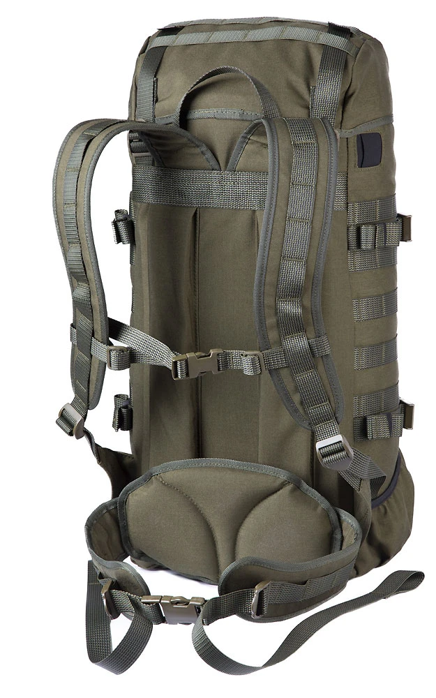 - PALS/MOLLE Ausrüstung für mögliches modulares und umfangreiches Ausbauen der Volumenkapazität, wenn Bedarf ist (PALS=Pouch Attachment Ladder System)