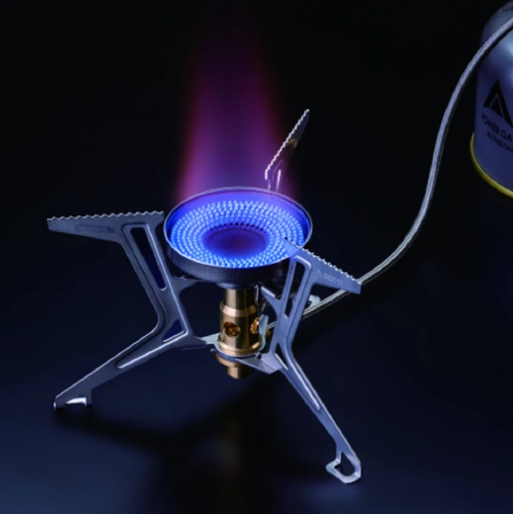 Gaskocher mit von der Brennstoffkartusche abgesetztem Brenner – dadurch mit niedrigerem Schwerpunkt als sein bauähnlicher Bruder Windmaster, dadurch auch standstabiler und damit besser geeignet für grössere Töpfe. Auch besser für grössere Topfdurchmesser ist der im Durchmesser etwas grössere Brennerkopf des Fusion.
